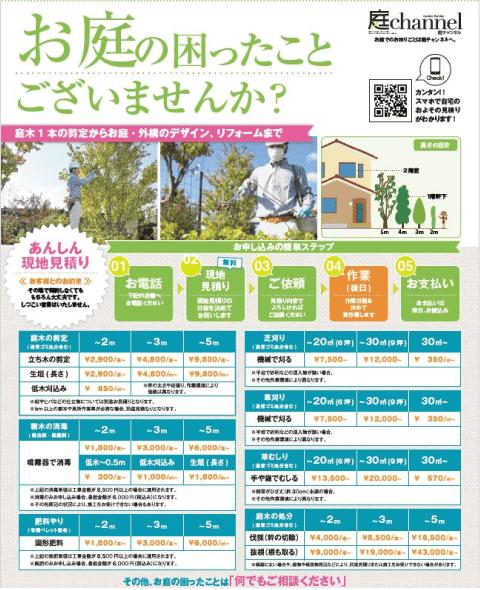研究会では、庭木の剪定・伐採・伐根、草刈り、消毒や施肥など、お庭のメンテナンス金額を自動積算するシステムを開発しました。