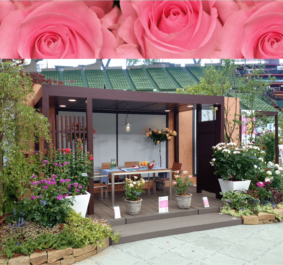 ローズテラスはバラの香りと壁面を彩るアートキャンバスで華やかに。ローズテラスを背にしたスペースは5thROOM。 リビングから出たその先は、屋根付きのちょっと贅沢なホームヤードルーフ。光、風を感じながらゆったりと過ごす、こころ癒やす空間に。 バラのアーチを抜けたそこはバックヤード。シンク、シェッドとキッチンガーデン。肩肘を張らずにできる幸せな庭空間を感じてください。 GARDEN WITH ROSES.