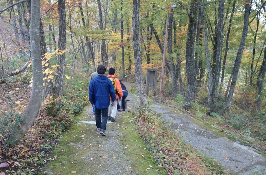 植物園の象徴である樹齢1000年の巨木「和池の大カツラ」は、森林の奥地で渓流を跨いで根を張っており、悠然としたその姿は参加者に神秘的な印象を与えた。