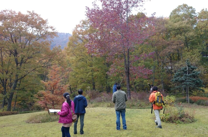 植物園の植栽主任である田丸氏にガイドをお願いし、園内を散策しながらさまざまな樹木を観察、ゆたかな自然の姿を体験した。